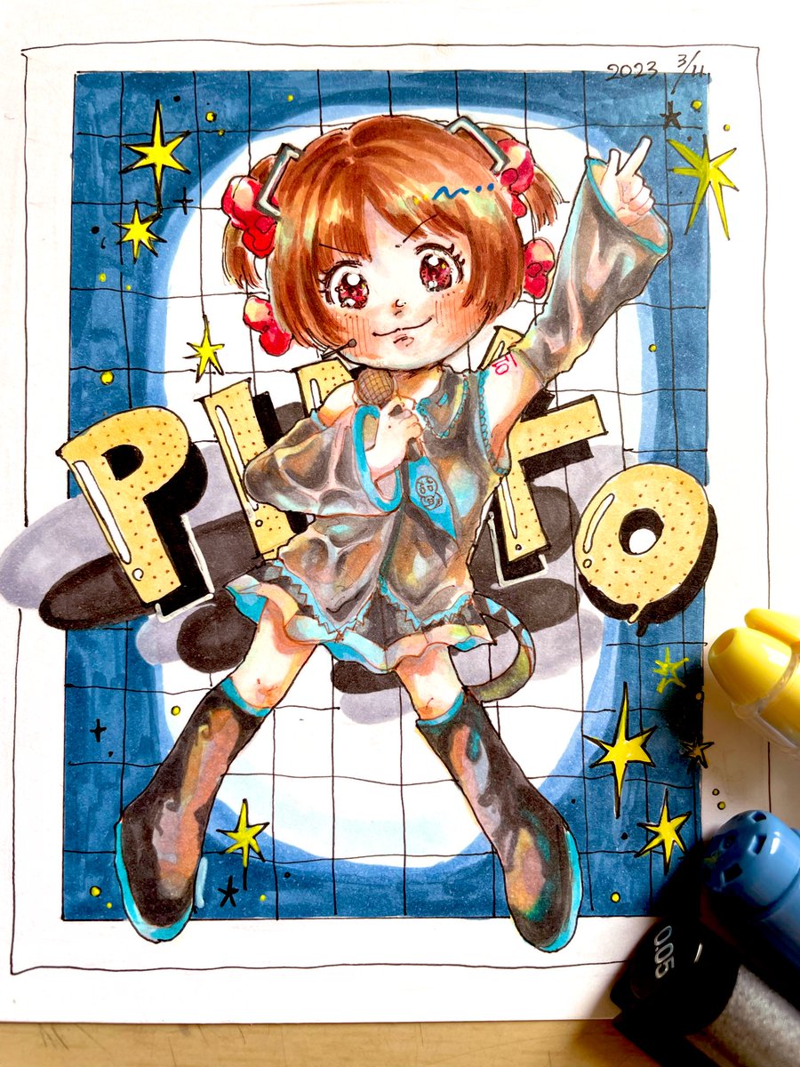 #イラスト #アナログイラスト #ピノコ #絵描きさんと繋がりたい ミクピノコでチェキ風に描いてみました😚💖💖 ハサミで切り取ったVer.の方がなんだか可愛い……🥹💘💘