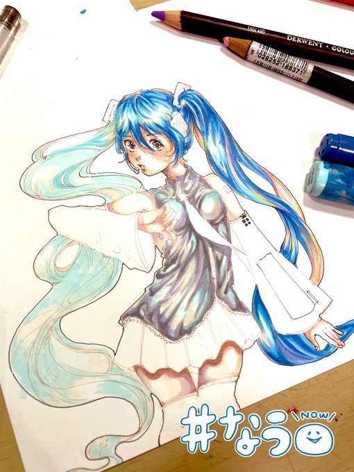 #イラスト #アナログ絵 #初音ミク 誰か髪のツヤの塗り方教えて欲しい…🥶 あと服の影も……😶🌫️😶🌫️