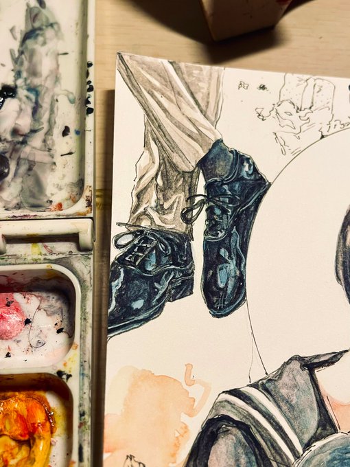 4 57 #水彩 #イラスト 紳士の靴…✨👞 1部チラ見せです!👀 23/05/19 07:51