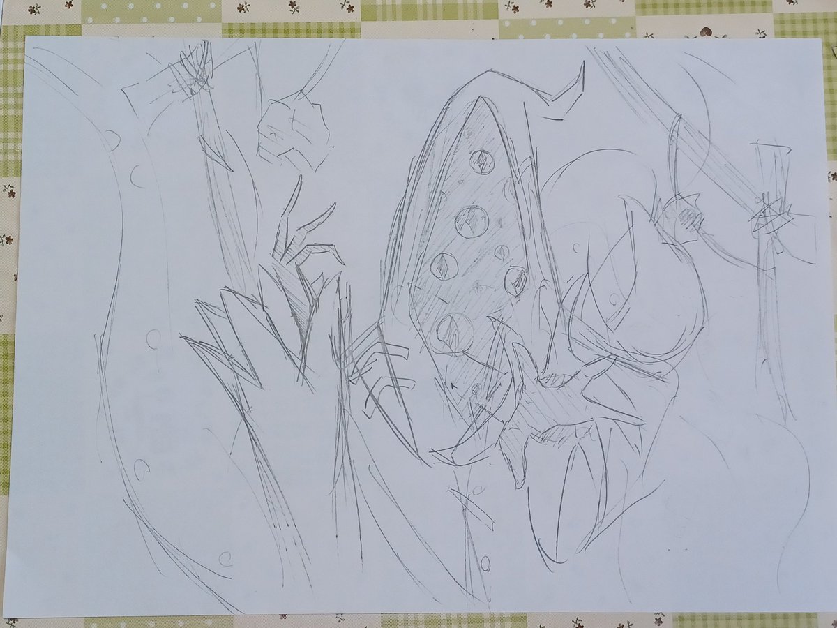 0 3 バイオハザード6やりながら 横で逆転オセロニアやりながら 空いた時間に絵描いて 12時30分に出来上がった謎の イラストでございます(?) #謎 #第五人格 #第五人格イラスト #深夜 22/03/02 00:08