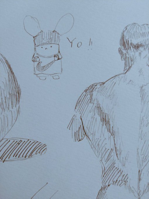2 33 絵の練習中の息抜きにひのえ舎のうさぎを描く。ラッパーバージョン。 #イラスト #イラスト練習 #鉛筆イラスト #ひのえ舎 #うさぎ #やさしい人物画 #ラッパーファッション 22/09/03 13:44