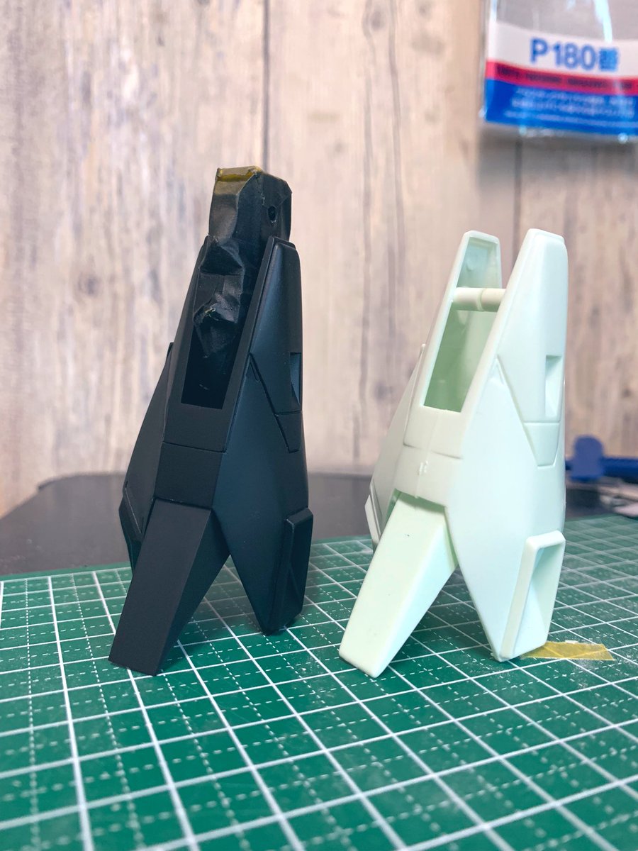 #ガンプラ #旧キット #zガンダム 箱絵の様なエッジの効いたスネになるように加工。 つま先の変形も足裏にかかとが乗っかる構造にしました。