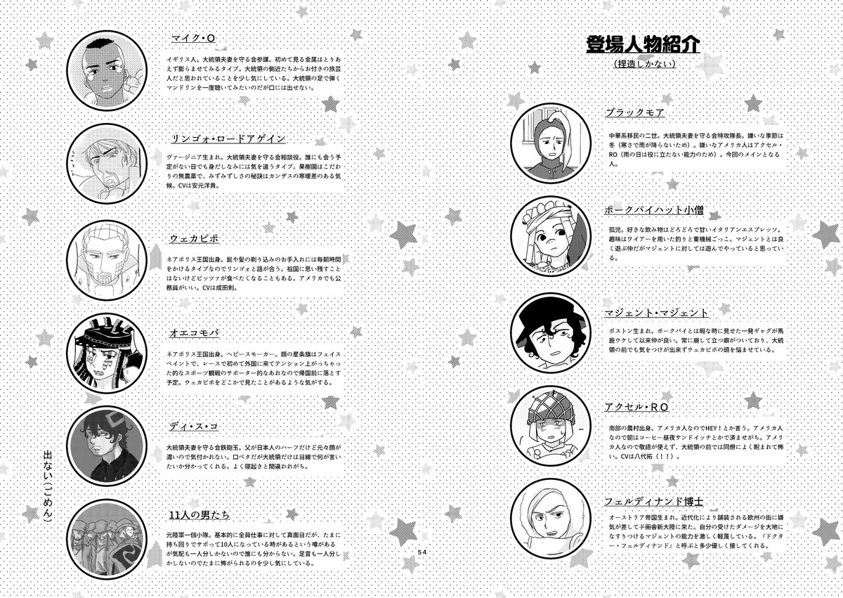 8 13 【ザワ19/大統領刺客】ハトがいません | 八那 #pixiv pixiv.net/artworks/77182… ザワの新刊サンプルをアップしました。七部刺客のだいたいオールキャラな本です。 19/10/08 21:21