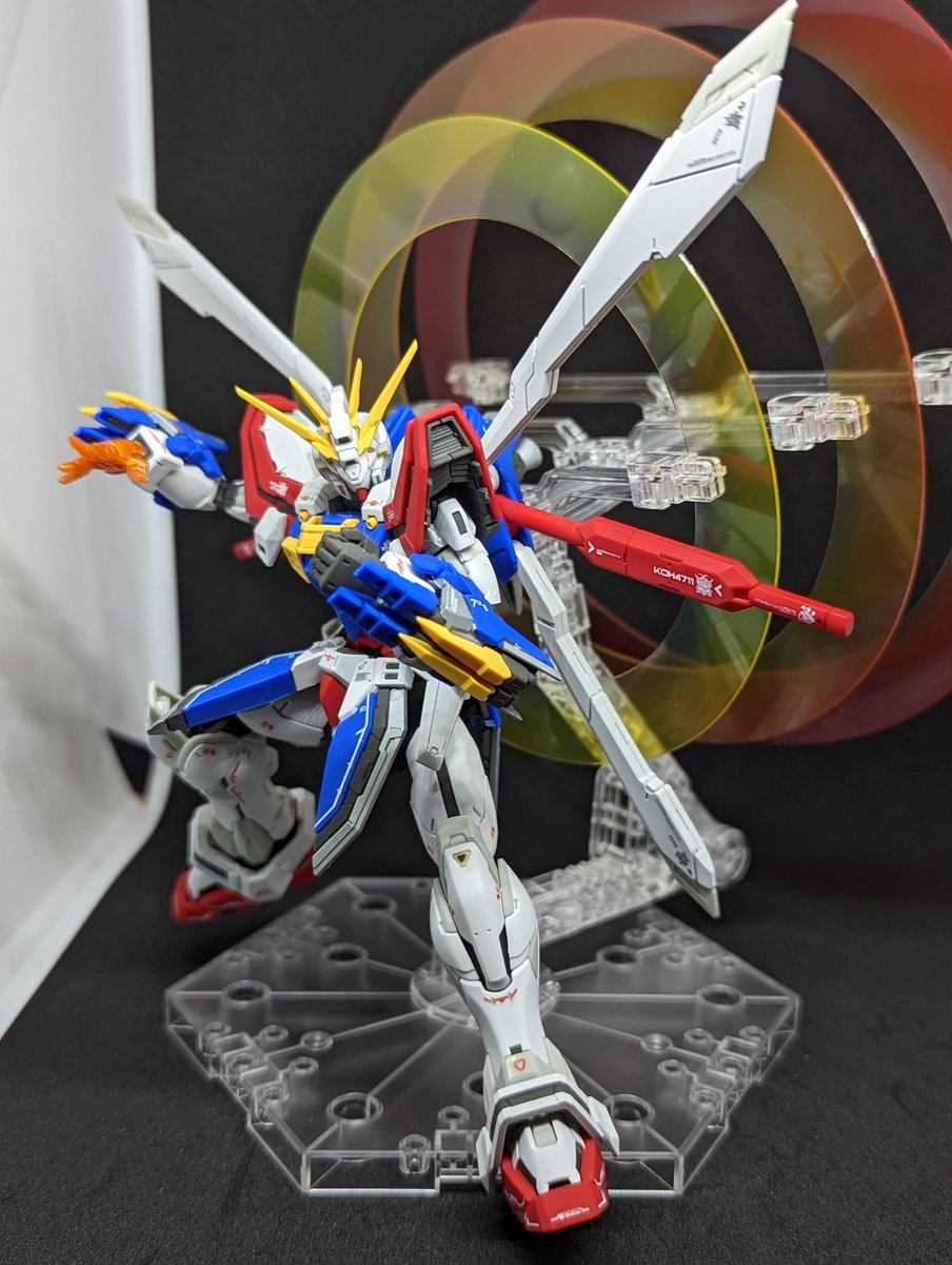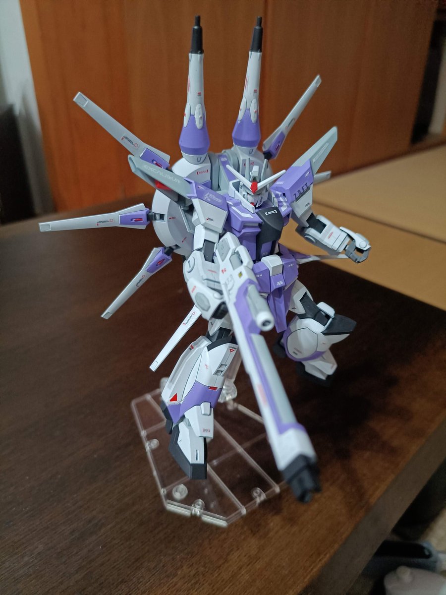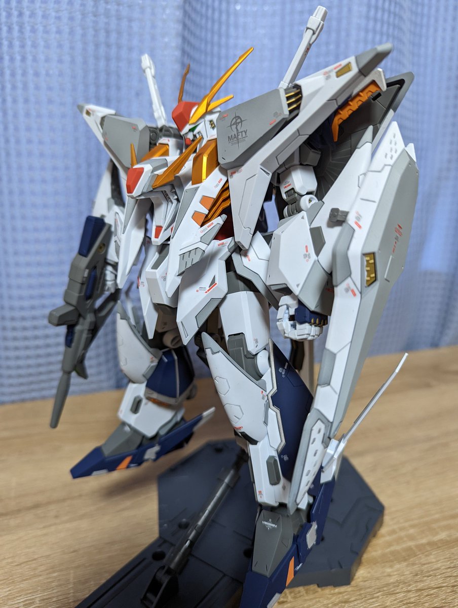 #ガンプラ #ガンプラ好きと繋がりたい #ガンプラを貼るとRTされると聞いて RGhi-νガンダム完成しました🎉 こ、これは個人的にはRGでも最上位のカッコよさ🤩 スタンドはダブルフィンファンネルに付いてたヤツ☝️ 素立ちは仰反るから厳しいかな、プロペラントタンクで支えて何とかって感じでした。