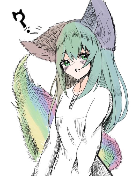 軽く色塗った!!! #イラスト #デジタルイラスト #ケモミミ #虹色