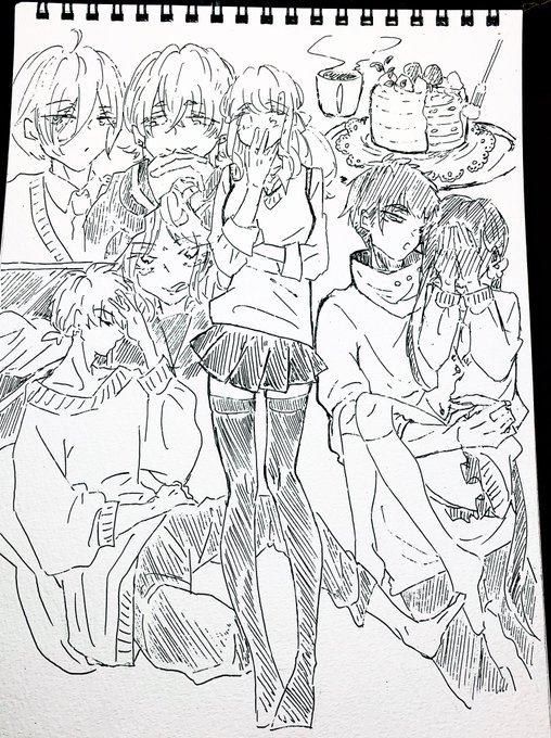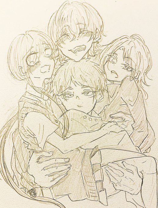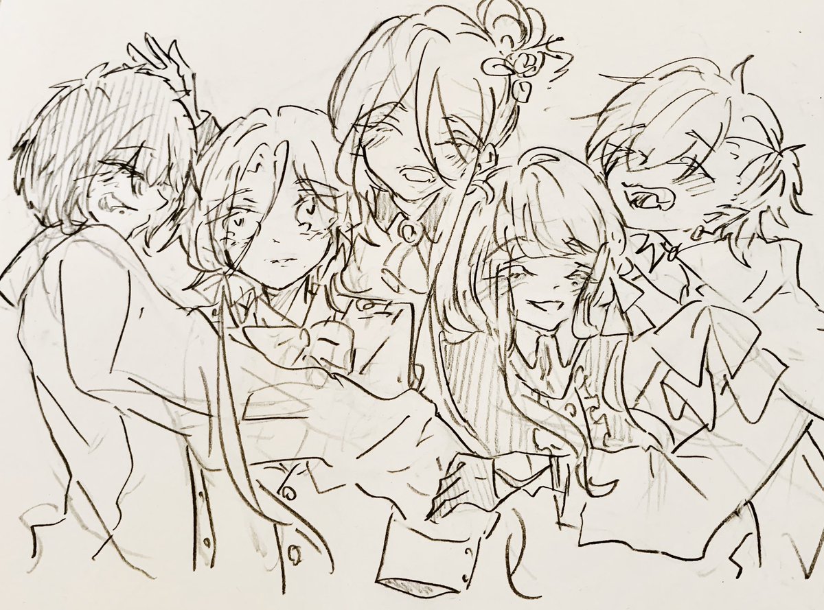 #寝る前落書き 『笑っていてほしい』 左から シリル レア ノア アリーヤ ユーゴです!