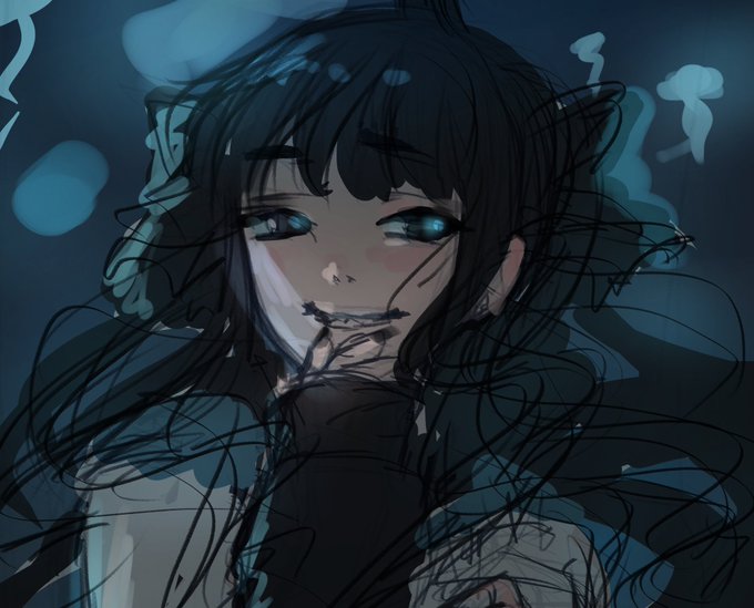 Further painting a fancy shark girl /sketch stage now/ @ArtemisVtuber on stream m.twitch.tv/qmori_ •w• everyone is invited! #artoftheblue