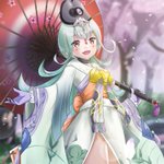 久しぶりに気合入れて描きました〜 締め切りに間に合った 笑 桜を見ながらお祖母様に想いを馳せるウスグモさん、かな? #キャラスト4周年記念ファンアート #キャラスト #CaravanStoriesFanArt #キキストラスのファンアート