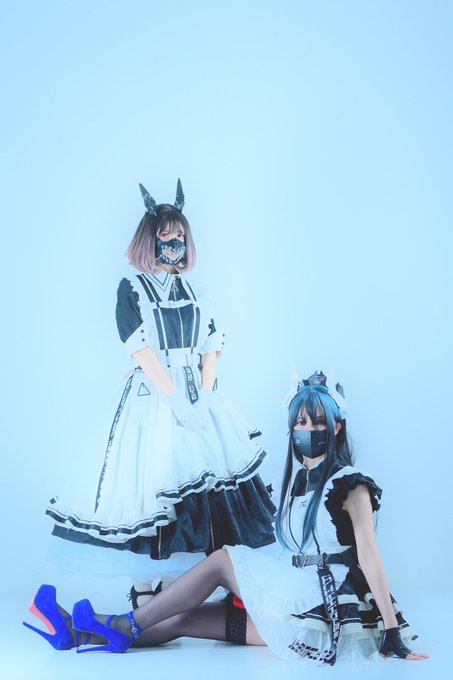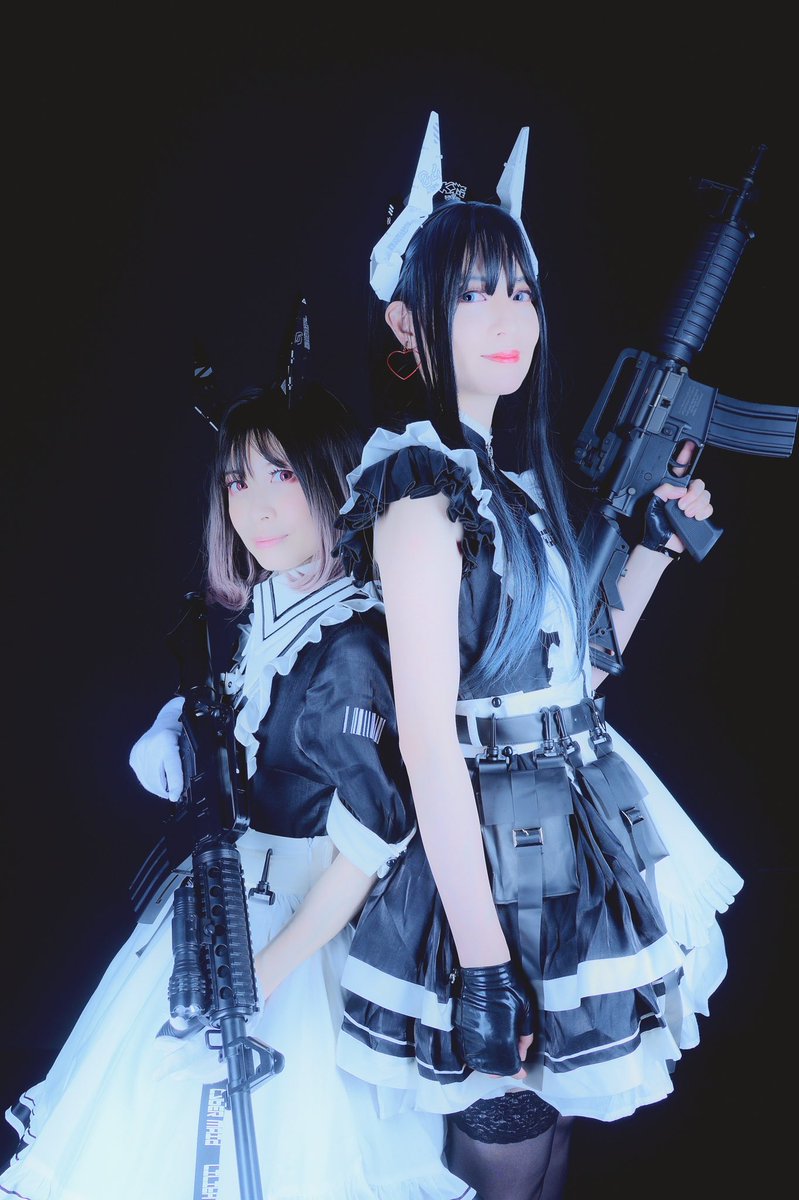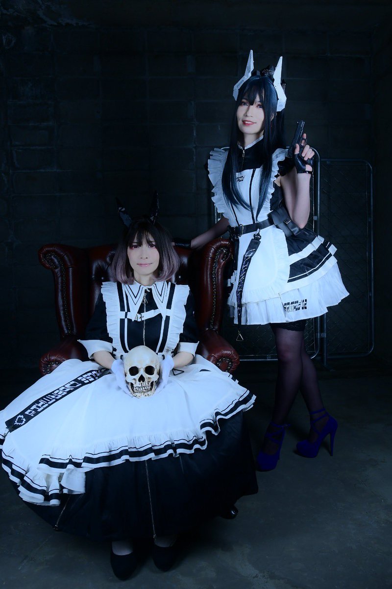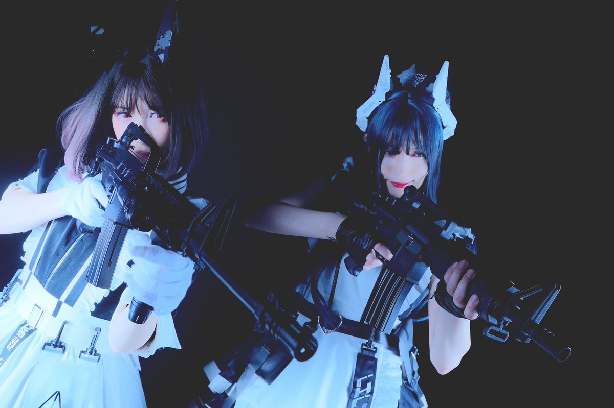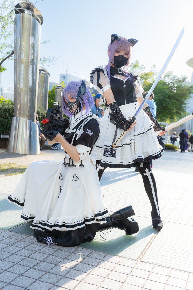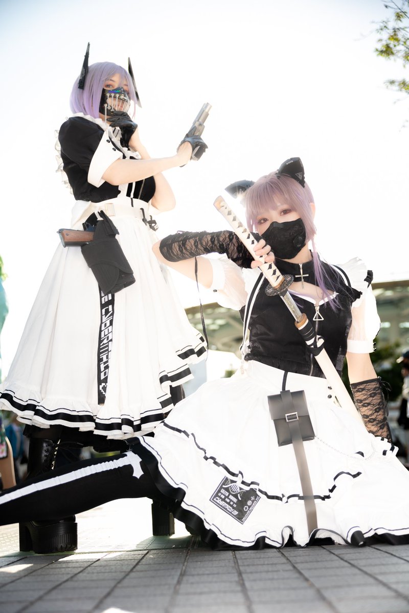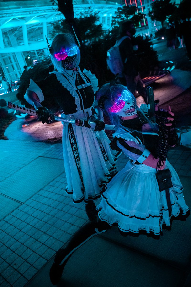 ☆Cosplay 創作メイド 1号機:葉月みか 2号機:みーたそ(@lum_mt ) photo:緋炎さん(@asabahien ) #サイバーメイド #創作コスプレ #武装メイド
