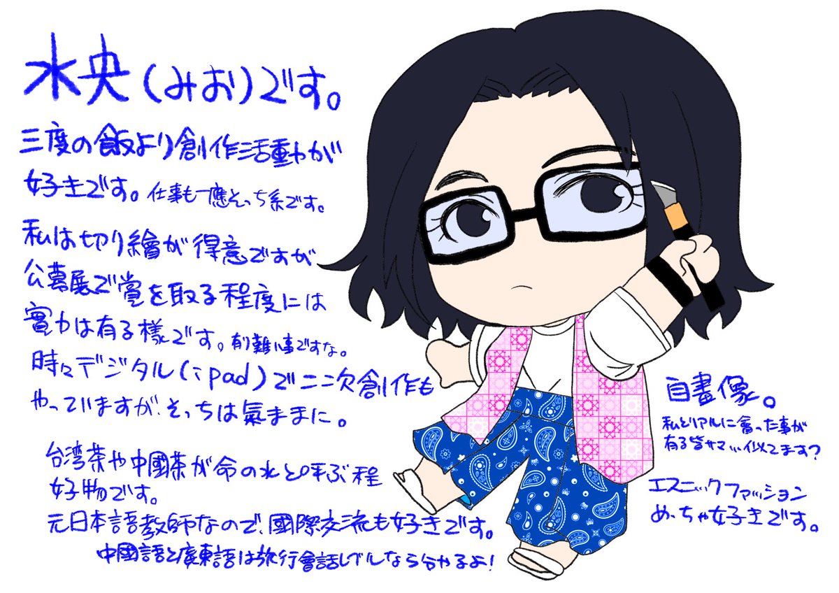 0 1 昔描いた創作ですが。 多分中国語、間違えてる() #見た人は無言でストーリー性を感じさせる 23/07/15 16:13
