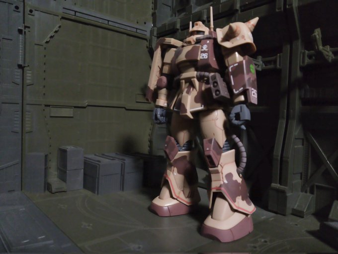 1 8 ザク・デザートタイプ (ダブルアンテナ仕様) でぎだ!! #ガンプラ #ガンプラの画像を貼るとRTされると聞いて カラカル隊仕様 23/07/23 19:51