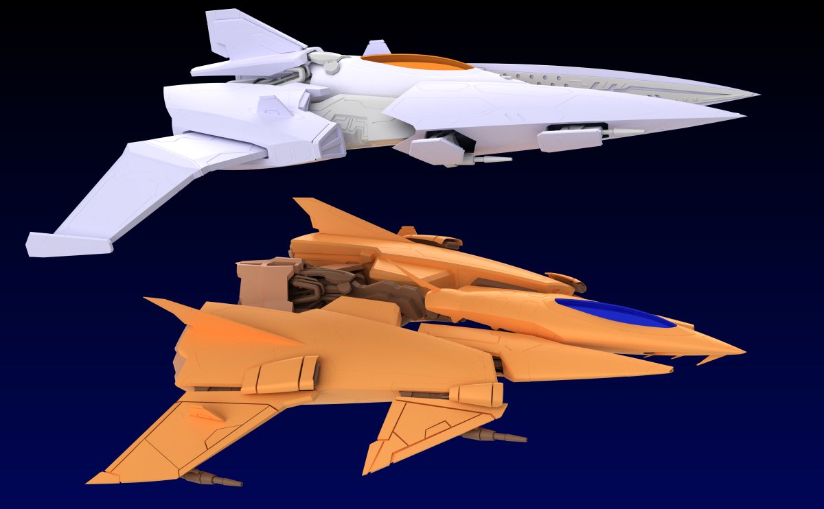 『グラディウス暦6665年、ネルバ基地。スペースシャトル用第12番滑走路。その端に急造された整備ハンガーより純白の機体が一機引き出されつつあった。』 ★★超時空戦闘機「メタリオン」 #Rhino3D