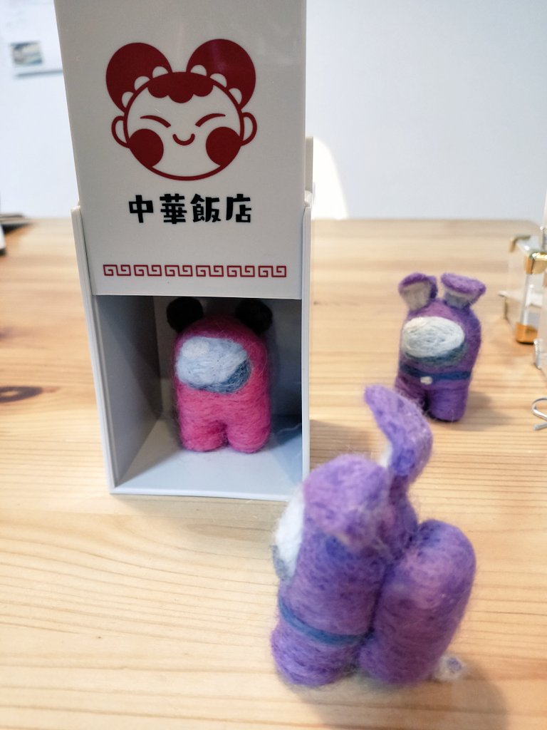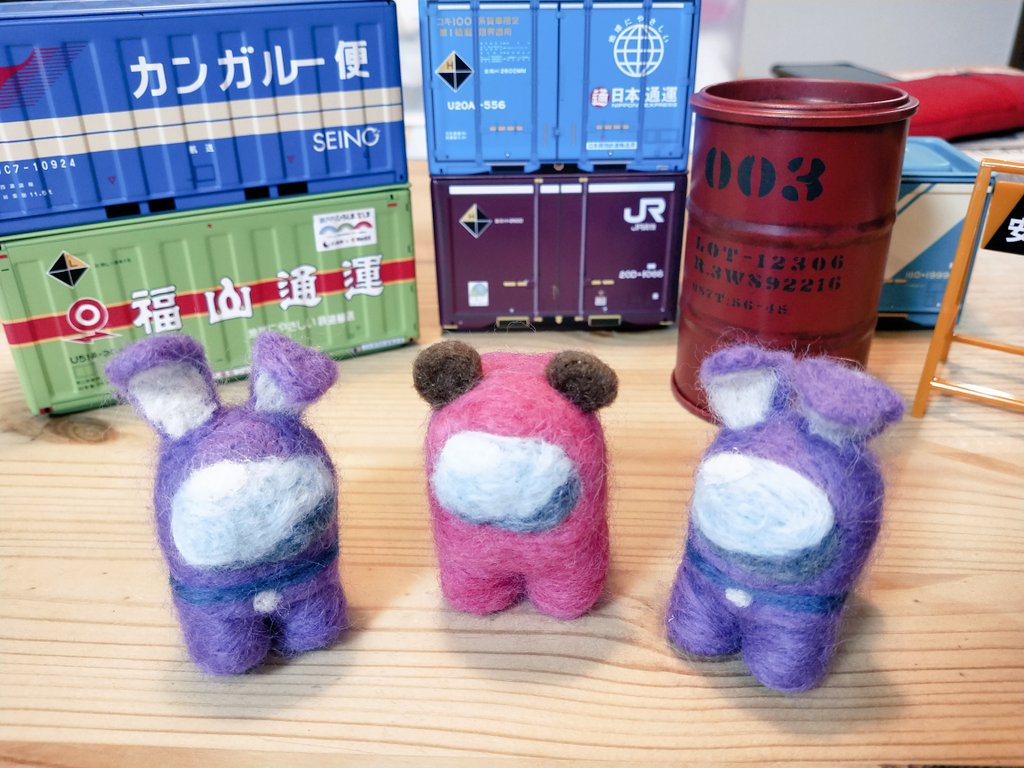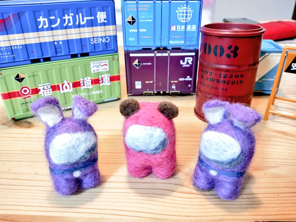 旦那がうちのお友達のために、アモアス🐶🐻スキンを作ってくれた✨ すんごい可愛い〜😆💗 「しるこしるこ」なん、めちゃかわよさん😘 この子たちは無事、横浜でお友達に渡せました☆ 次は🤖さんスキンかな?🥑 #bintrollFA #羊毛フェルト