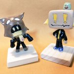 旦那が楽しそうにお絵描きしてたものを頂きました🥰 「戦うびんとろシリーズ」との事w 📦さん→糸使い 😺さん→暗器使い アニメ化、希望です✨ ちなみに、📦さんは元ネタのキャラが執事✨です! この中に📦さんが執事で仕えてくれる世界線に飛ばしてくれる方いませんかー?٩(๑´0`๑)۶ #bintrollFA