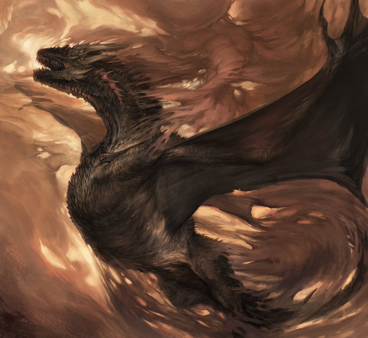 Balerion in his full might, now that I have a pretty good idea what I want him to look like I'll start including him in smoking hot pieces of very one sided battles. ✨
