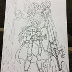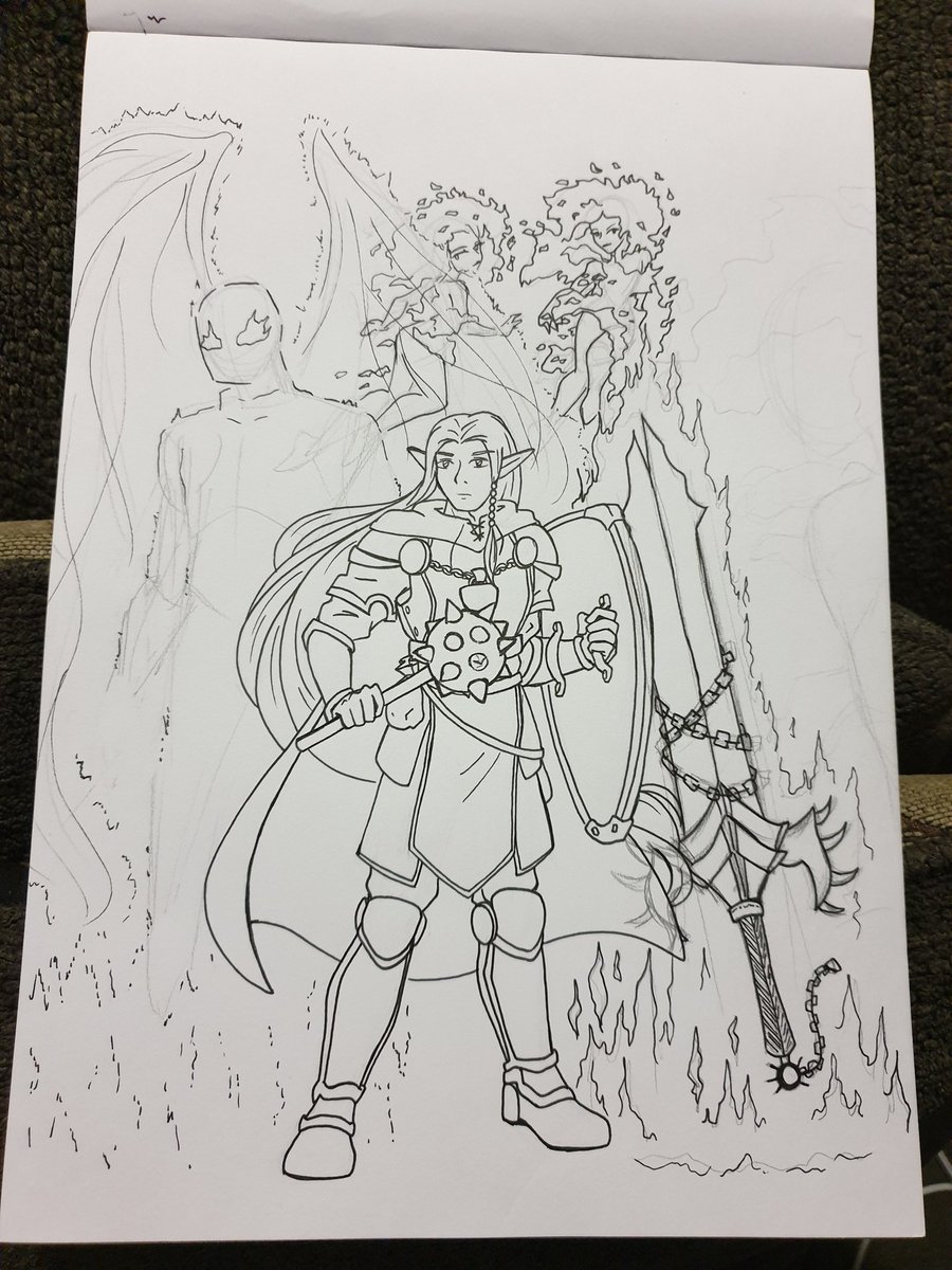 Oct 1st #Inktober2019 It's not finished because I got ambitious and kept on filling the page. My elf cleric Berrian with Guardian of Faith, dryad Spirit Guardians and Spiritual Weapon.