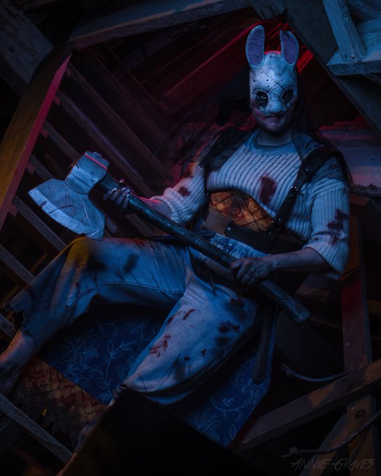𝘈 𝘧𝘪𝘨𝘶𝘳𝘦 𝘤𝘭𝘢𝘥 𝘪𝘯 𝘵𝘩𝘦 𝘩𝘦𝘢𝘥 𝘰𝘧 𝘢 𝘩𝘢𝘳𝘦. 𝘈 𝘮𝘰𝘴𝘵 𝘥𝘪𝘴𝘵𝘶𝘳𝘣𝘪𝘯𝘨 𝘴𝘪𝘨𝘩𝘵. - You know I had to bring this spooky lady back for Halloween, @DeadByBHVR - Huntress: Me 📷: instagram.com/anniegraves.ph… - #DeadbyDaylight #deadbydaylightcosplay