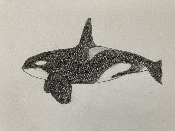 ちろ助さんに対抗すべく、中学1年生の時に描いたシャチのマスコットの水彩画をもってきました。描いた当時は結構自信があったのですが、ちろ助さんの水彩画を見たあとだと流石に見劣りますね。 #すごい方にどうにか対抗したい #シャチ #水彩画