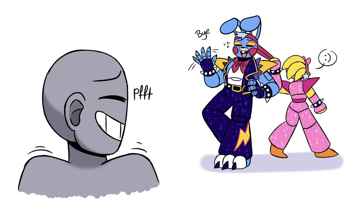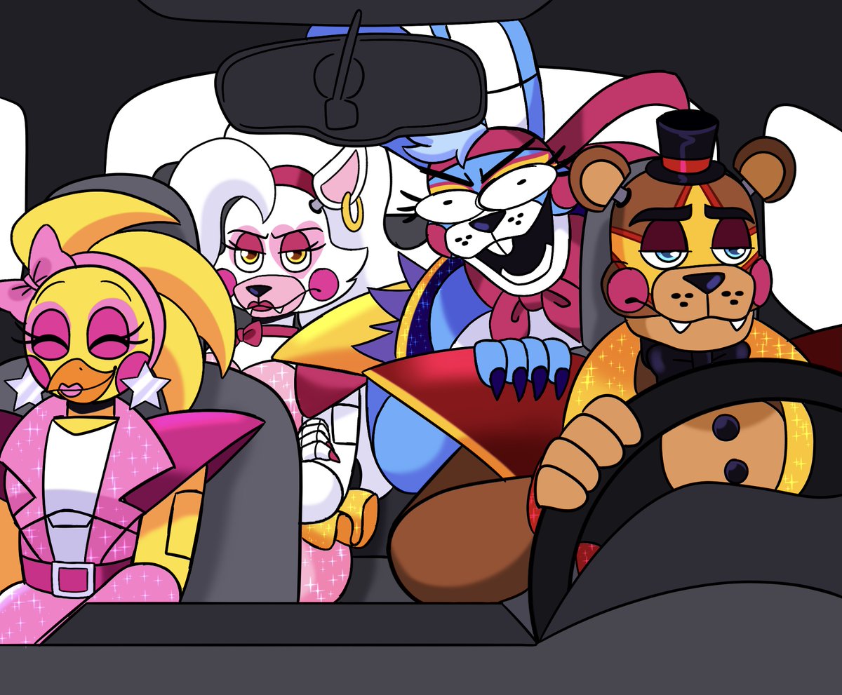 A while ago I drew the Glamtog gang in the style of the cutouts, so I wanted to draw them again but this time for Fazerblast! 💫💥 #FNAF #fnafsecuritybreach