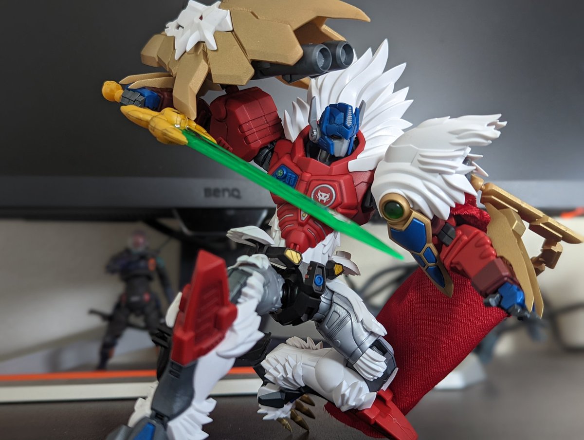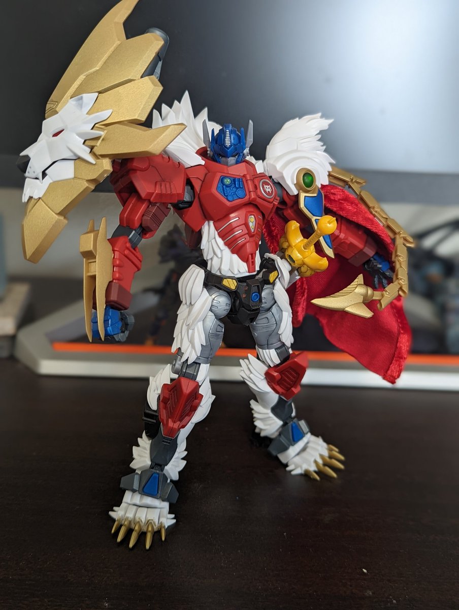 レオプライム完成 ゴールド部分だけ成型色だとアレなのでガンダムマーカーエアブラシで塗ってみた。よく動くしかっこいいね #FLAMETOYS #風雷模型 #Transformers #レオプライム