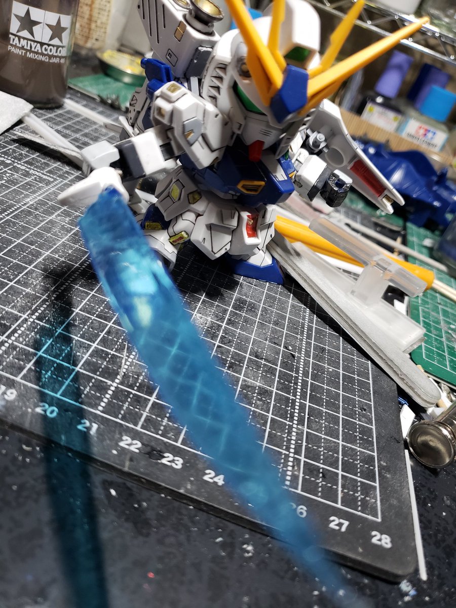 ファンネル以外の部分塗装終了。 SDだけモールドの彫り直しに時間が掛かりました💦 ビームサーベル、ファンネルもいじる予定。 苦行!w #ガンプラ #ガンプラの画像を貼るとRTされると聞いて #ガンプラ好きとつながりたい