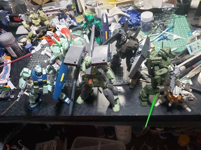 1月に作ったジム系統のMSたち😃 卓の上がゴチャりすぎて分かりずらい画像となっております😅 兎に角、積みを崩したいもののプレバンから来る、月イチ補充でまた積むの繰り返し…しばらく一般販売はスルーだな。 #ガンプラ #ガンプラの画像を貼るとRTされると聞いて #ガンプラは自由だ
