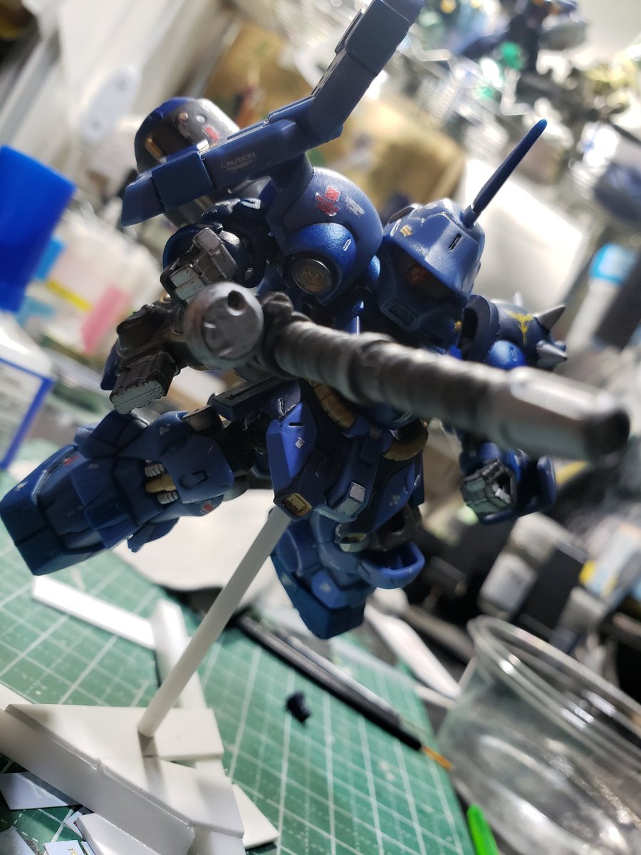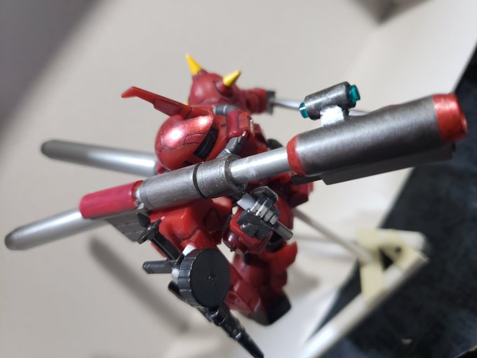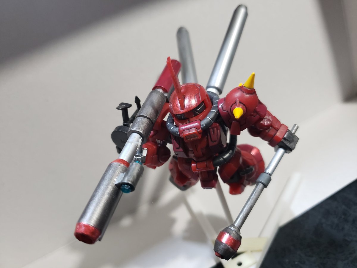 お手軽に食玩❗ それでも手を掛けると普通にHGなみに大変💦 ジャイアントバズとシュツルムファウスト、台座はお手製です。 バックパックも少し手を加えました😃 このシリーズは足裏の肉抜き穴の修正が大変(^^; #ガンプラ #ガンプラの画像貼るとRTされると聞いて #食玩