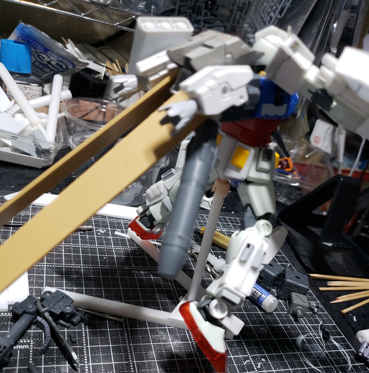 自分解釈による高機動ガンダム。 間接がクタクタのEGガンダムを改修するだけのハズが…w 色塗りはどうしよう? G3っぽく行くか、プロトタイプっぽく行くかで考え中🤔 #ガンプラ #ガンプラの画像貼るとRTされると聞いて #ガンプラはどんな自由な発想で作ってもいいんだ #ガンプラ改造