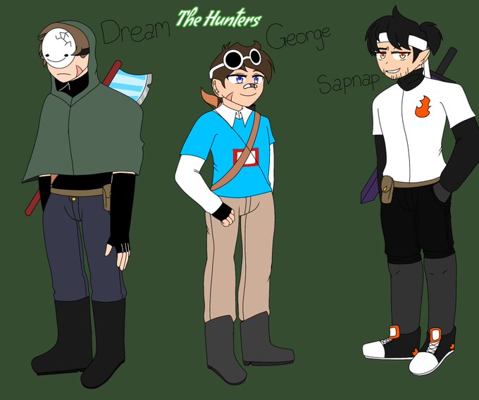 Dream SMP Au I created! It's called 'Mythical Hunt' and so far I only have the hunters designs down buuuut I'm working on the others! Yes, I love creating AUs- #MythicalHunt #mcytfanart #mcyt #dreamsmpfanart #dreamsmp #art #digitalart #drawing