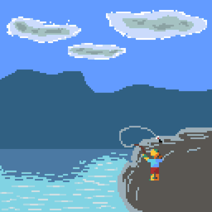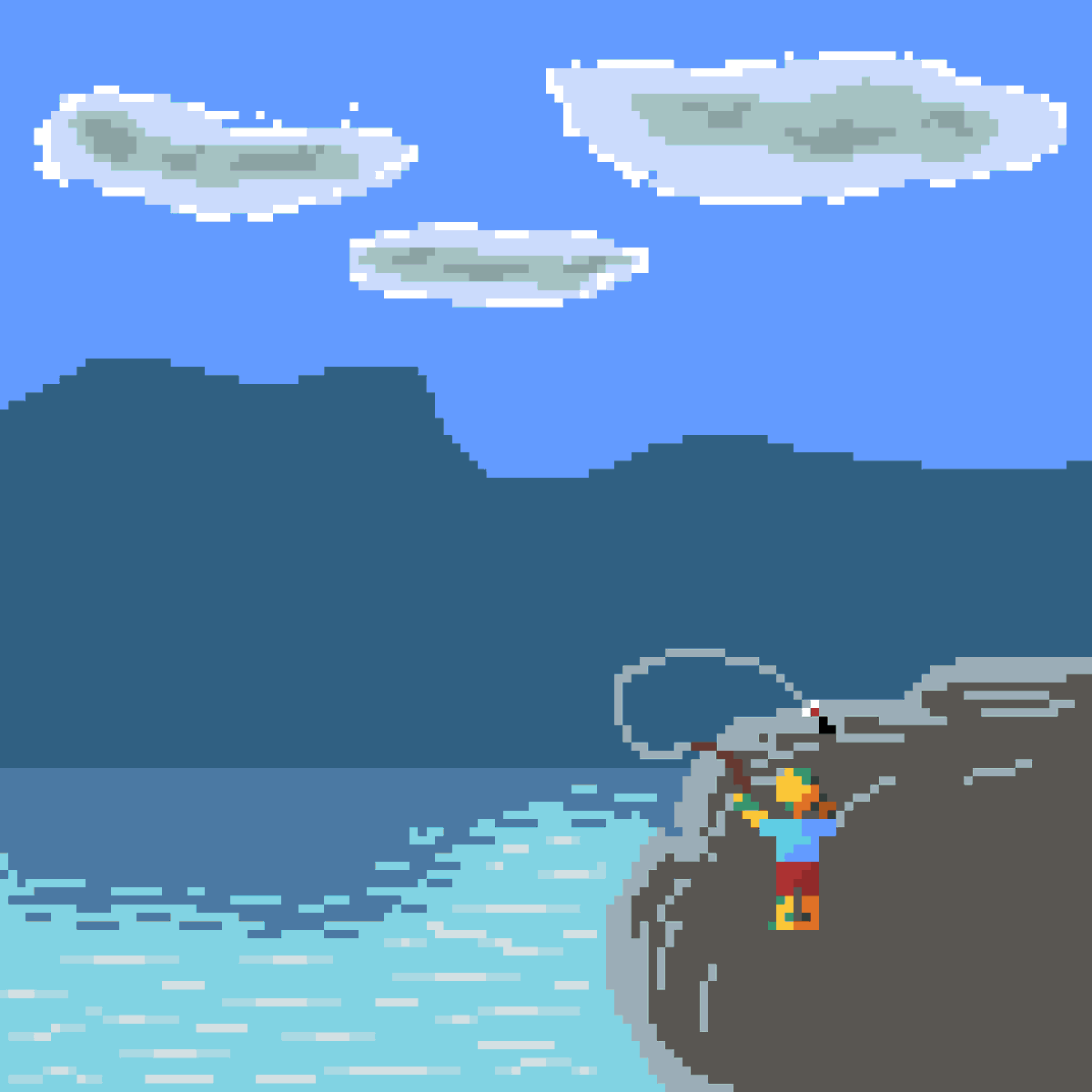 dessa vez eu pulei por querer um dia do #pixeltober2022 os temas água e hobby, pois eu tive a ideia de juntar os dois, virando pesca #pixelart