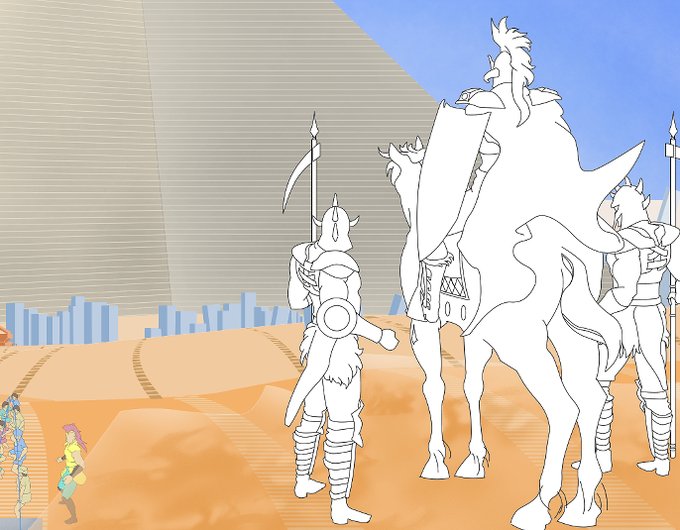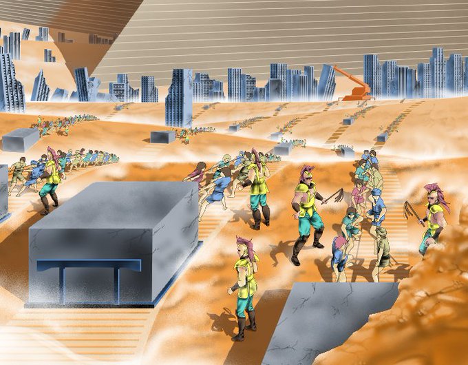 #靄 を描画中 誰か考察済みかも知れんが、高さは何mあるんだろうか? #富士山(3776m)は無茶としても、#東京タワー(333m)や #東京スカイツリー(634m)に匹敵するのは間違いない #北斗の拳 #イラスト #illustration #聖帝 #サウザー #聖帝十字陵 #拳王 #黒王号 #背景美術