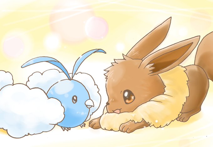 1 7 もふもふ #イーブイ #チルット #イラスト 23/03/17 23:16