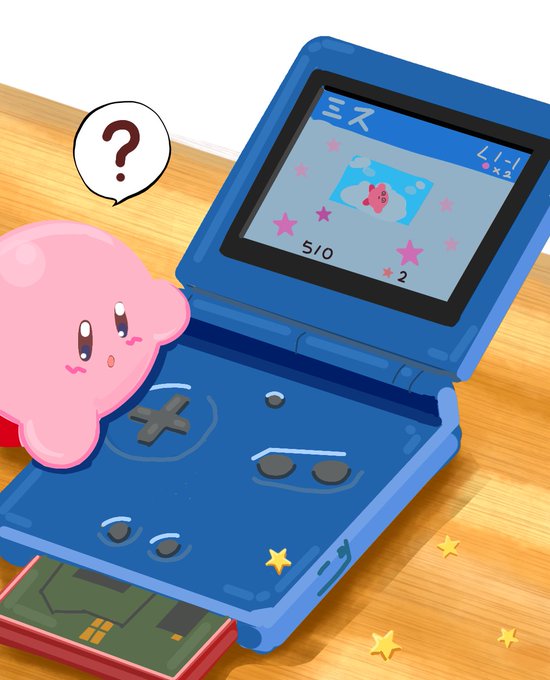 コロコロカービィがSWで遊べるようになったと聞いて✨ GB本体が壊れた後、アドバンスSPでプレイしようとしたら上下左右反転ヘルモードで1面すらクリアできなかった思い出\(^o^)/ #カービィ #イラスト