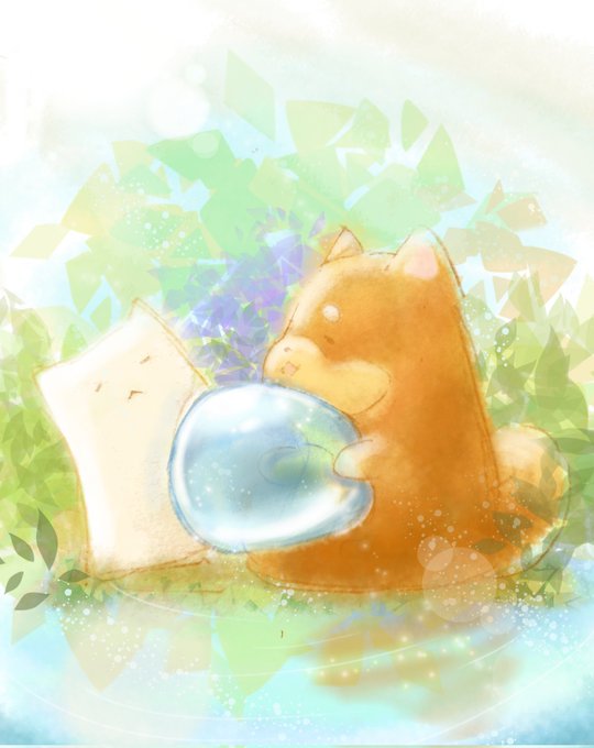「水滴?スライム?」 「なんだろねー?」 #イラスト #柴犬 #梅雨