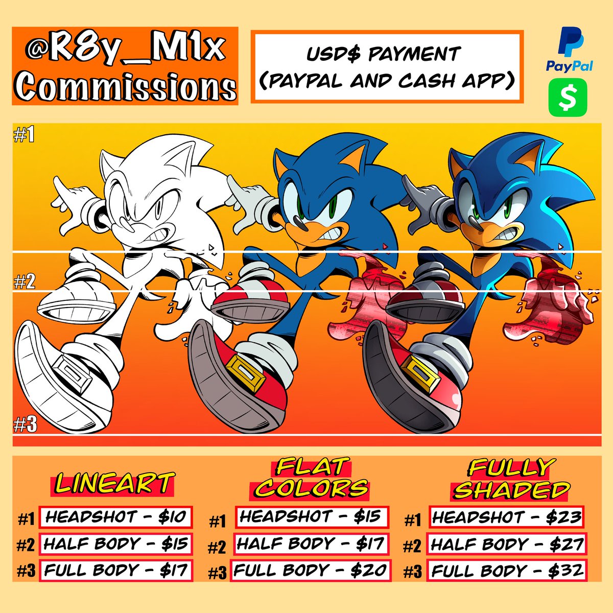 ‼️Updated commission sheet‼️ Now you may be able to pay me through both PayPal and Cash-app! . Dm me here on Twitter or Instagram if you’d like a commission.👍 . #commissionsopen #artcommissions #SonicTheHedgehog #digitalart