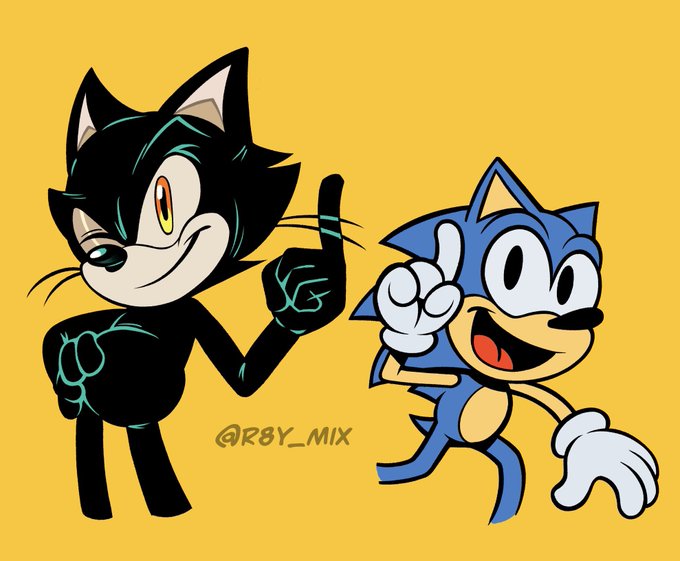 Drew @itsthebeastlyfigure Felix the cat in Sonic's form! Oh and also sonic the hedgehog in Felix's form! . #felixthecat #SonicTheHedeghog #digitalart #rubberhosestyle #fanart