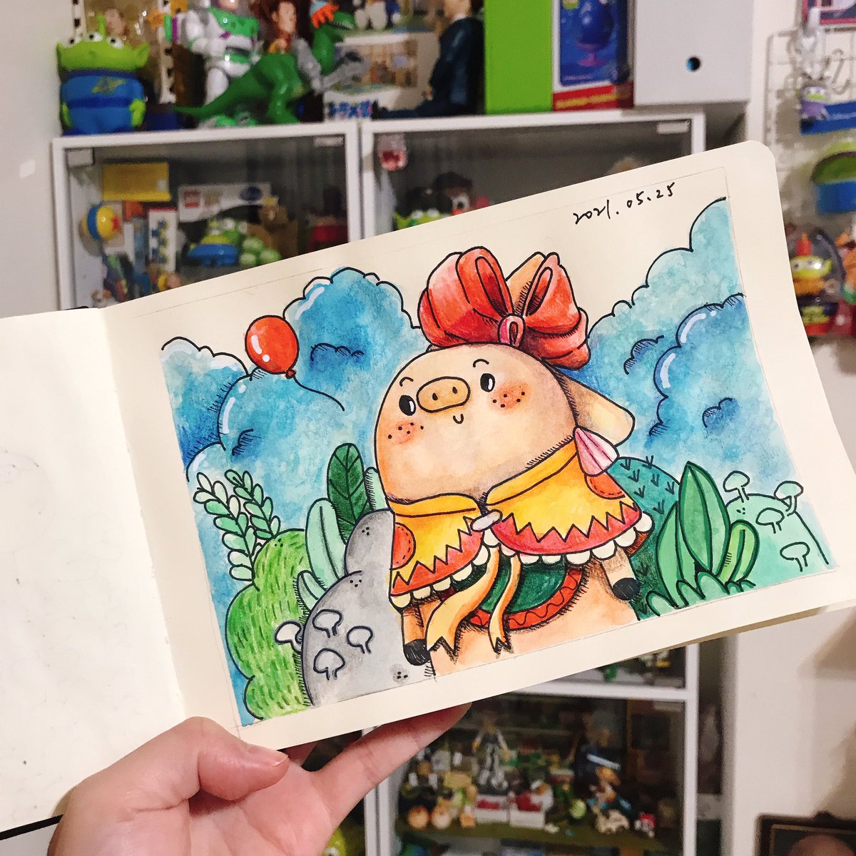 . 事隔多年水彩畫😅😅😅 手繪唯一缺點就是沒辦法Ctrl + Z #手繪 #色鉛筆画 #豬 #豚 #PUPUGURU #噗噗豬與咕嚕豬 #插圖 #圖文 #插畫 #台灣插畫家 #原創 #繪圖 #繪畫 #procreate #illustration #illustrated #cuteart #cuteartstyle #draw #drawing #characterdesign #procreateillustration #kawaii