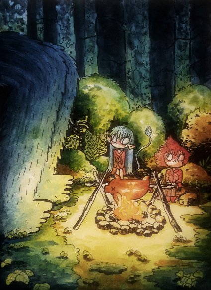 #InktoberDay3 Day 3's prompt was roasted. This painting took me a little longer so it is posted late, but the results are worth it. #inktober #inktober2018 #watercolor #jotun #giant #huldra #campfire #scandinavia #forest #mythology