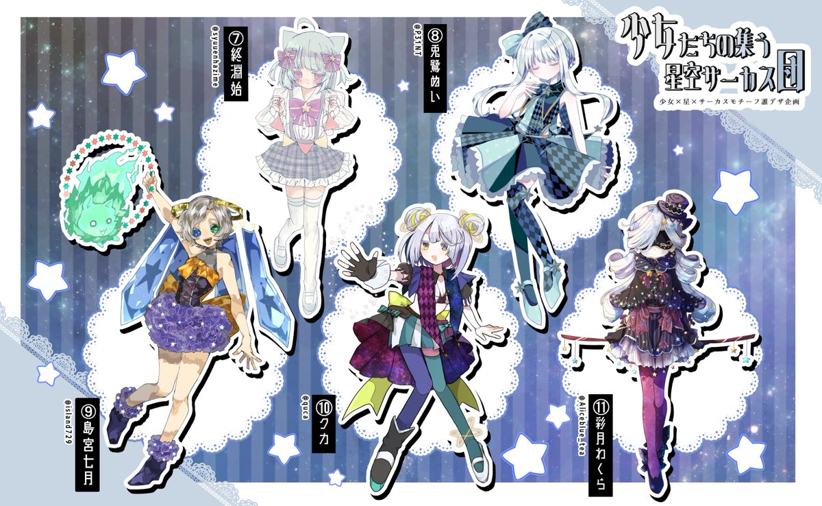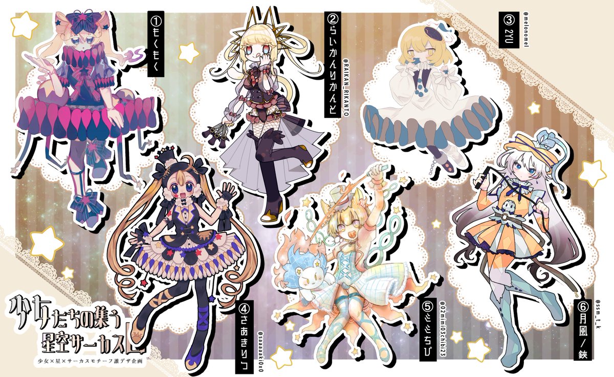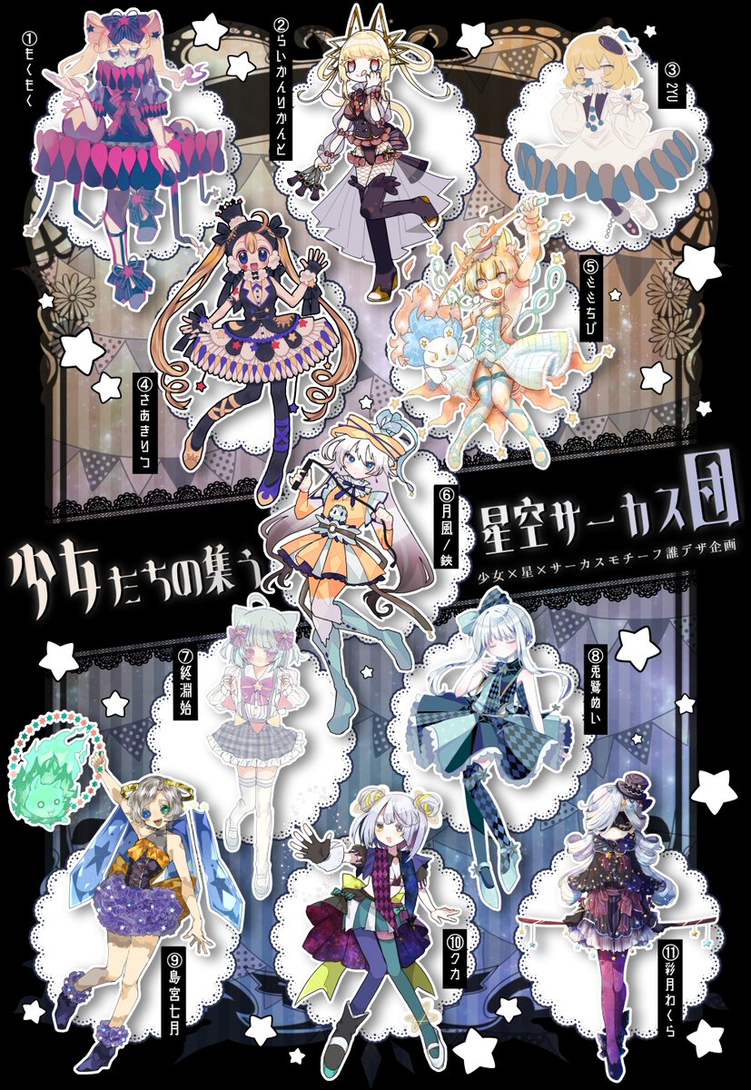 兎鷺ぬいさん主催の誰デザゲームに参加しました テーマは「少女・星・サーカス」です 私は2番のキャラデザを描かせて頂きました! 私の原案は何番でしょうか? アンケートも順次設置するので気軽に投票してみてください🌟 #誰のキャラデザだゲーム #少女たちの集う星空サーカス団