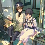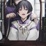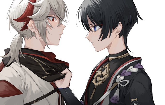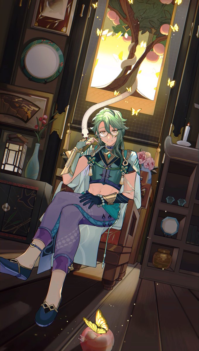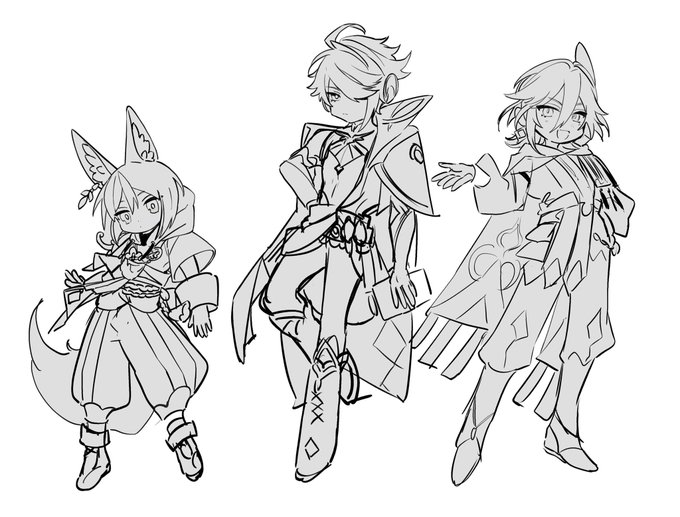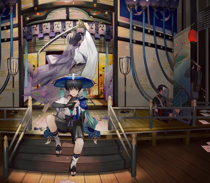 これは大変どうでも良い裏話なんですけど。 正面座り構図で1年に一回スカラマシュさんを写経する会をやっていて…今回もそれに倣って正面座り構図にしたのだ… と思ったらよく考えたら五歌仙物語の時も正面座りで描いていたっていう…2020年に描いたス…の絵(最初のやつ)描き手の技量が若いね…😇 twitter.com/raku_ge/status…