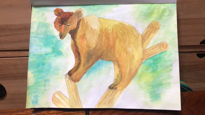 デッサンから散々失敗して更に描き直して何とか描けたサーバルキャットです、耳が大きいのと細くて長くてめっっちゃ長い足が特徴です笑 #イラスト好きと繋がりたい #絵描きさんと繋がりたい #水彩画 #サーバルキャット #動物画