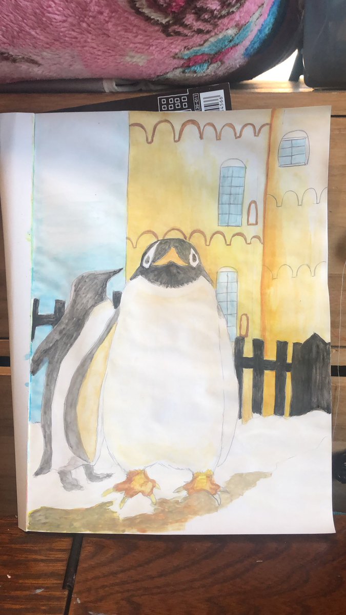 先日の写真を元にして描いたペンギンさん。コナン「建物曲がってるよー?」蘭「そう言うのは言っちゃ駄目よー?」笑 #イラスト好きと繋がりたい #絵描きさんと繋がりたい #水彩画 twitter.com/marinepark_nix…