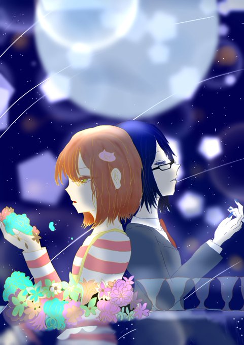 #wrwrdFA 月の下で憂う花びら 溶け込むは藍の色 花見つめしは黄の色