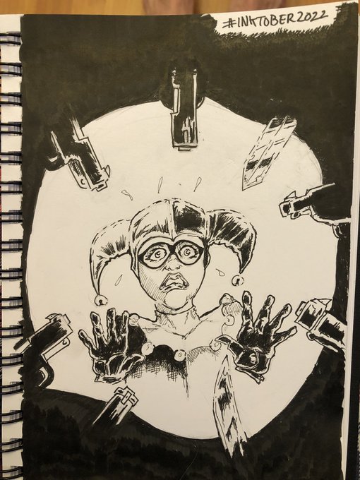 Inktober 2022 Day 18: Scrape. Here’s Harley getting into a bit of a scrape. #inktober2022 #inktober2022day18 #inktober #HarleyQuinn