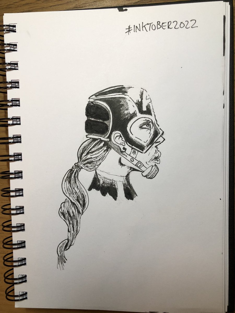 Inktober 2022 Day 19: Ponytail. Here’s a gender swapped Captain America with a ponytail. Look, I went to the pub yesterday. Be thankful you’ve got anything. #inktober2022 #inktober2022day19 #inktober