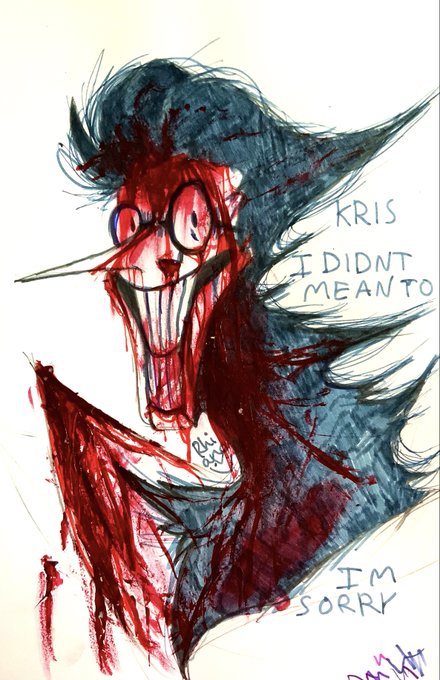 Blood warning KRIS KRIS IM SORRY I DIDN’T MEAN TO THE STRINGS KRIS A spooky drawing for yall used nail polish for the darker bits of blood #spamton #HappyHalloween2021 #spamtober #spamtonfanart #DELTARUNE #DeltaruneChapter2 #deltarunefanart