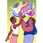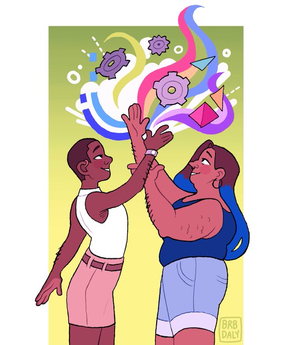 there's power in collaboration! support and buy from marginalized artists! 🌈⚙️ #illustration #fatart #disabledartist