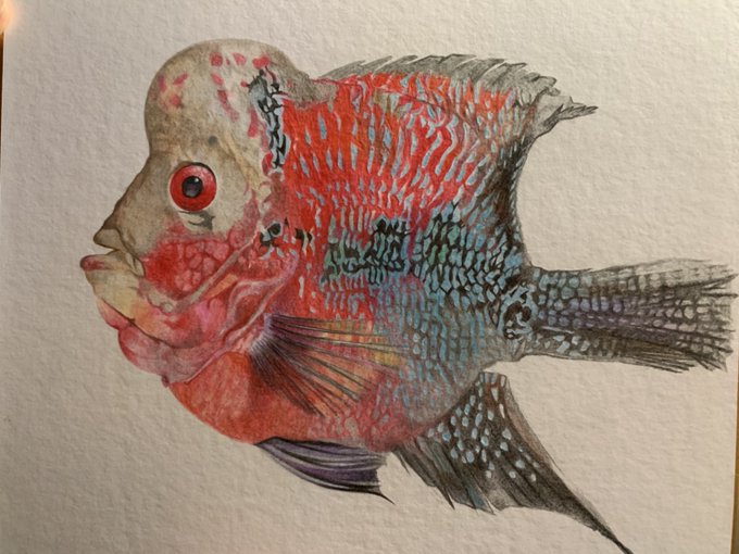 3 22 色鉛筆だけで魚を描きました。 20/03/18 15:14