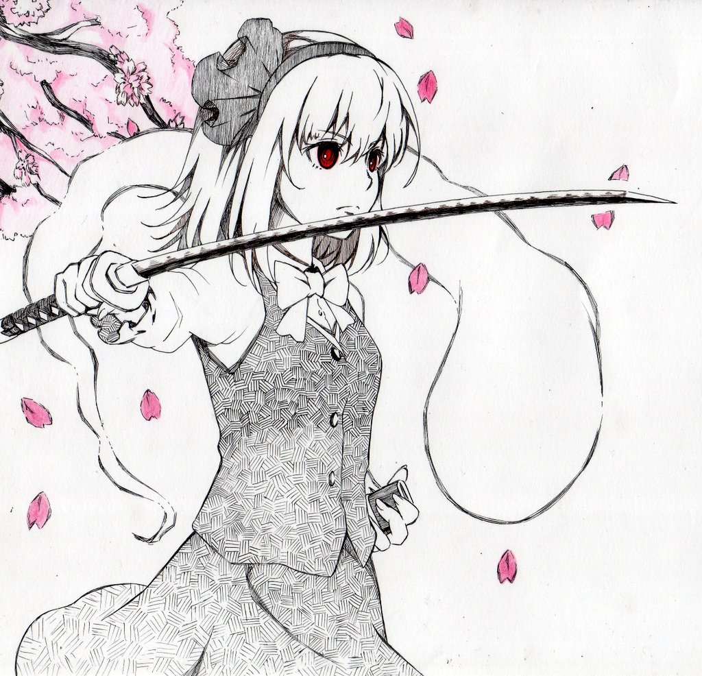 25 55 ボールペンで魂魄妖夢描きました。アクセントに少しだけ色付け 20/04/01 13:42