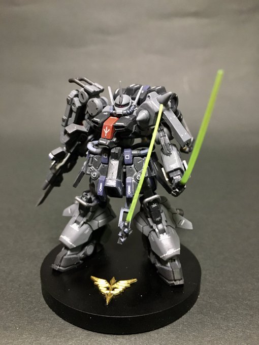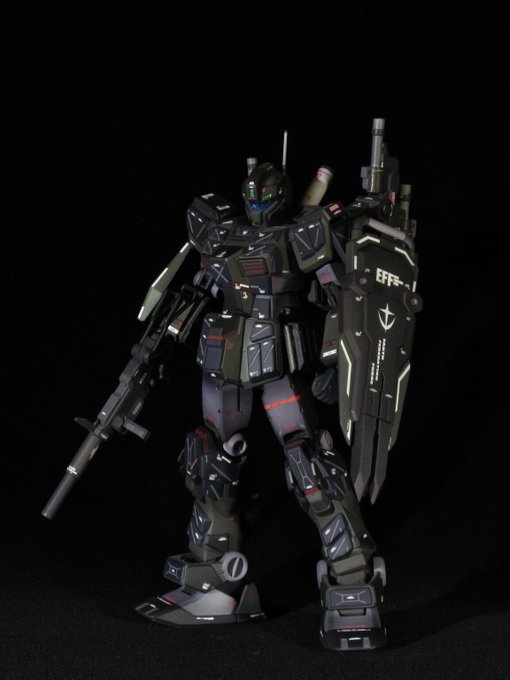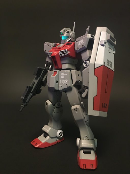 HGジムストライカー完成 もともとがディテールの多いキットだったからスジボリは控えめにしたけど、もっとバキバキに彫るのもアリだったかも #ガンプラ #ジム・ストライカー